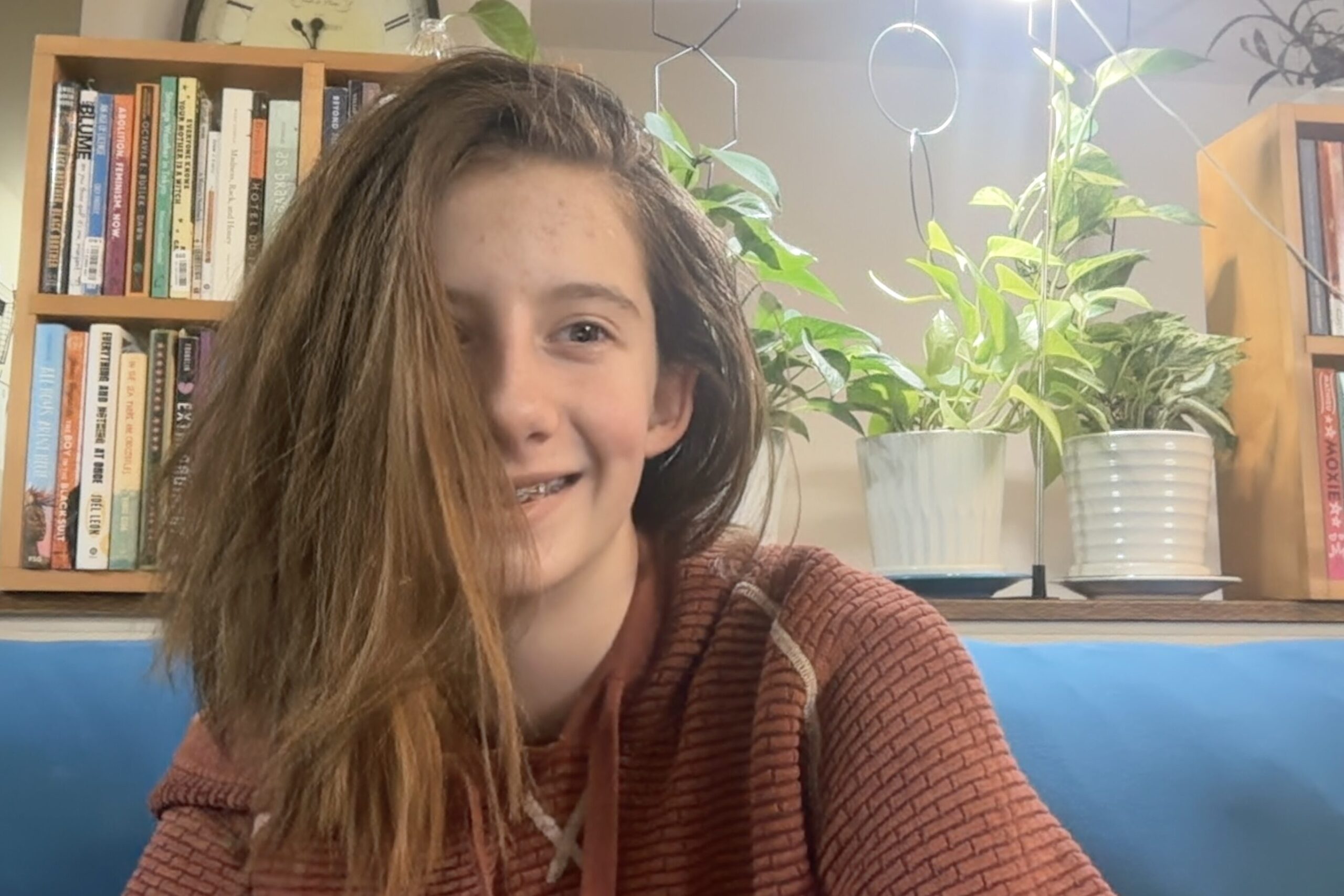 Seeing virtually every item as an art material just waiting to be explored, Thea (also known as Tanner) Frandson has been consciously and slowly perfecting their art skills since third grade. However, they were drawn to more rudimentary media—pencil and crayon—from a very early age. They constantly explore the middle school art room and dig through their mom’s art studio in Jefferson, Wisconsin. Thea is known to create robots out of cardboard, dogs from felt and wire, and will paint just about any surface that isn’t moving (and probably some that are). During the pandemic, Thea experimented with a variety of media and took several art classes via Outschool; their favorite was a Basquiat class. As Thea becomes more self-aware and emotionally intelligent, their art exploration deepens. Recently, they transmuted their grief surrounding a family member’s passing into a graphite portrait; their family’s emotional reaction to this piece showed Thea that art can be healing for both the creator and the viewer.